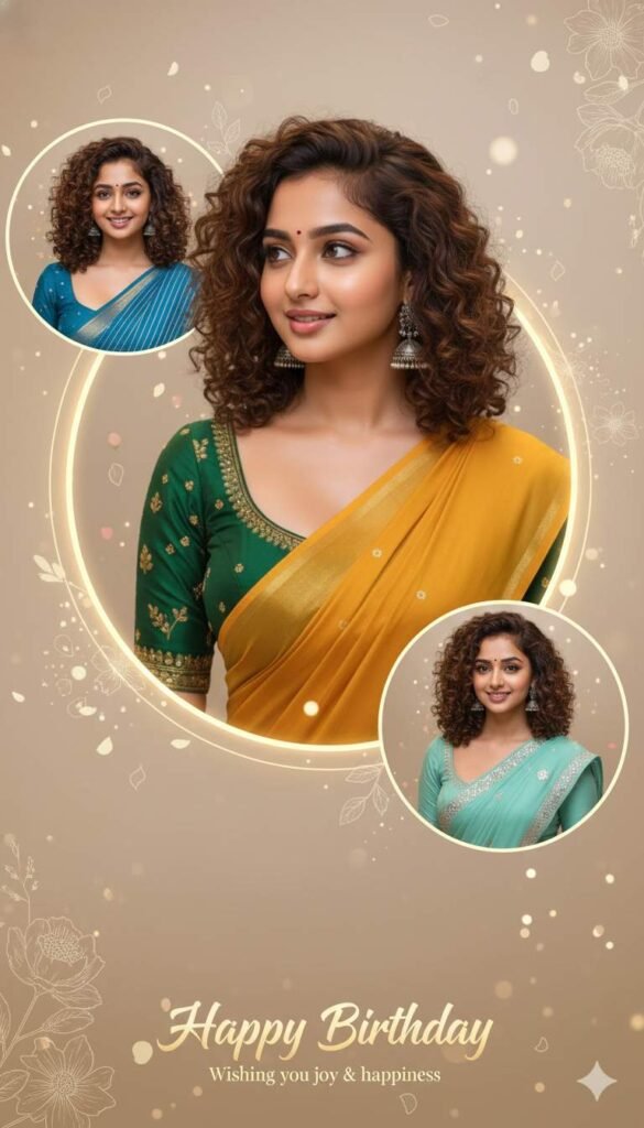 Overall Look & Mood: Clean, modern, festive, traditional Indian elegance, premium birthday poster design, balanced spacing, soft colors, luxury finish, ultra-realistic DSLR quality, cinematic clarity.